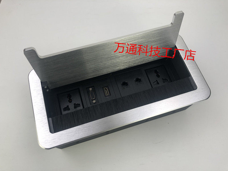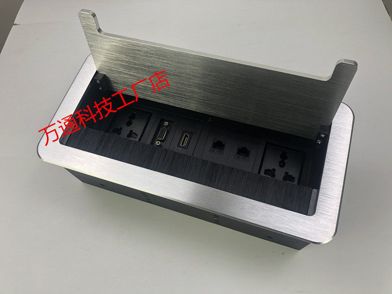 Multimedia desktop socket with hairbrush multifunction information junction box flip concealed power socket connector