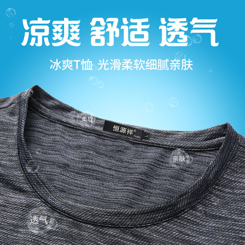 Hengyuan Xiang Summer T-shirt men short sleeve middle-aged round collar loose ice silk T-shirt half sleeve daddy dress male summer clothes