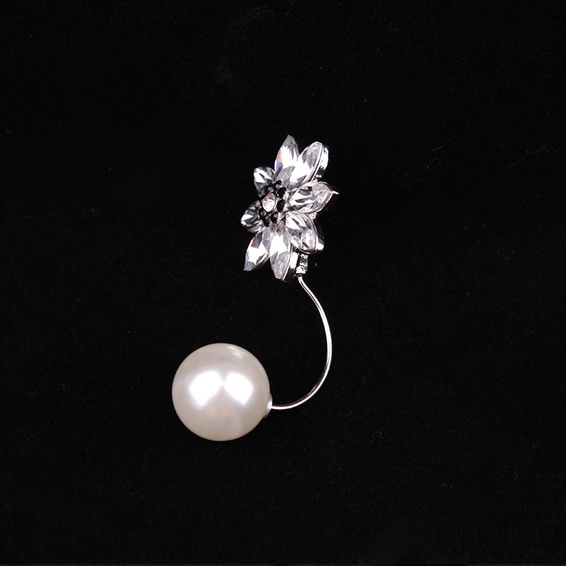 Japan-ROK upscale Crystal neckline Shirt Pearl collar Flower minimalist cardiothoracic Pin-Proof Walking Light Brooch Brooch Shawl Buttondown Accessories
