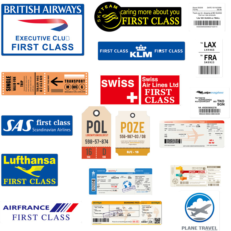 30 AIR FLYING TICKETS Suitcase Sticker Boarding Pass Barcode Suitcase With Personality Tide Card Stickler