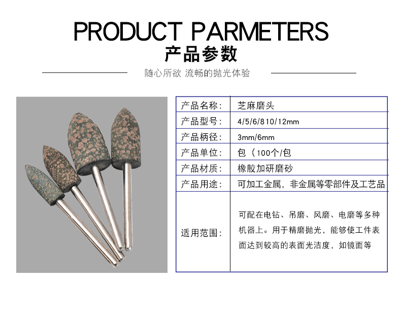 Sesame grinding head 3mm pneumatic grinding head grinding machine mold metal electric grinding rubber polishing rubber cylindrical conical