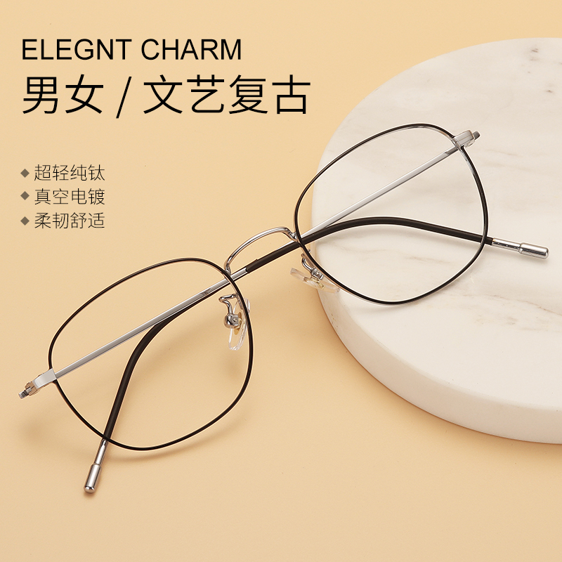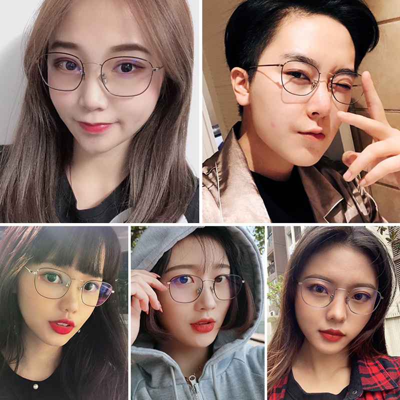 With finished myopia anti-blue light glasses female Korean version tide with degree retro gold wire pure titanium eye frame net red male