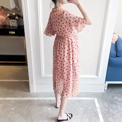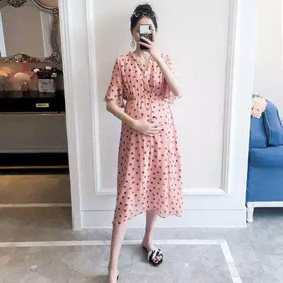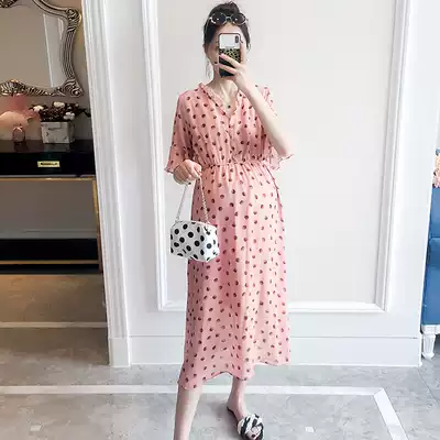 Pregnant women nursing dress summer fashion vneck high waist slim chiffon skirt long version knee half sleeve long skirt