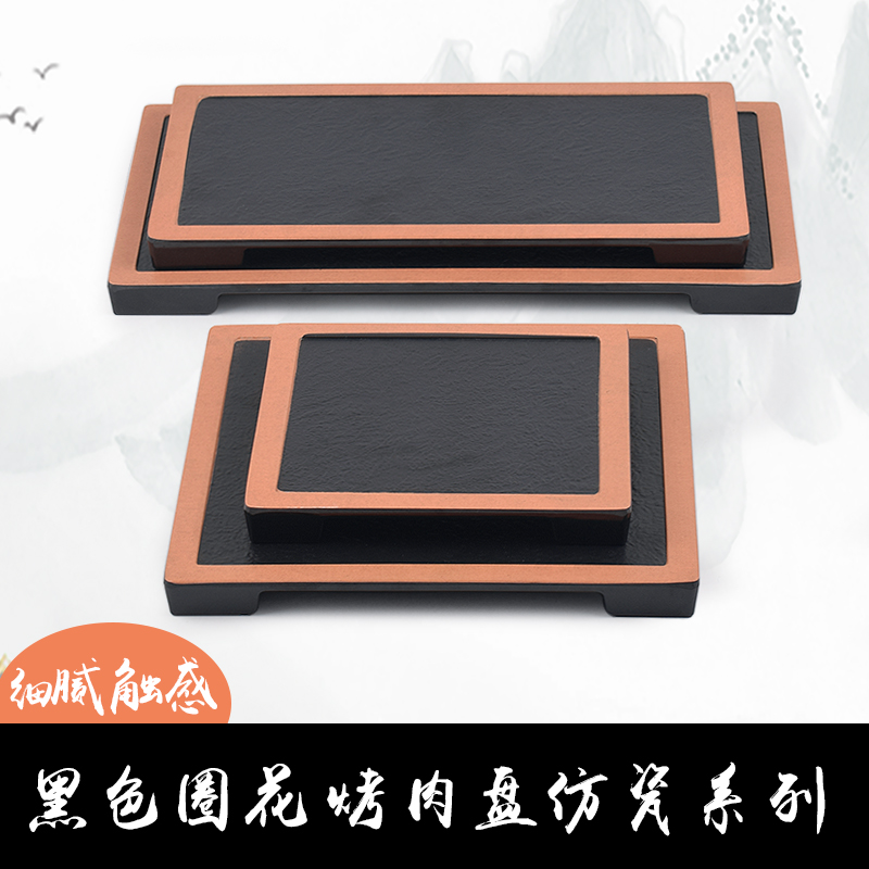 Black circle flower rectangular sashimi sushi flat plate slate plate hot pot barbecue western food barbecue plate melamine tableware