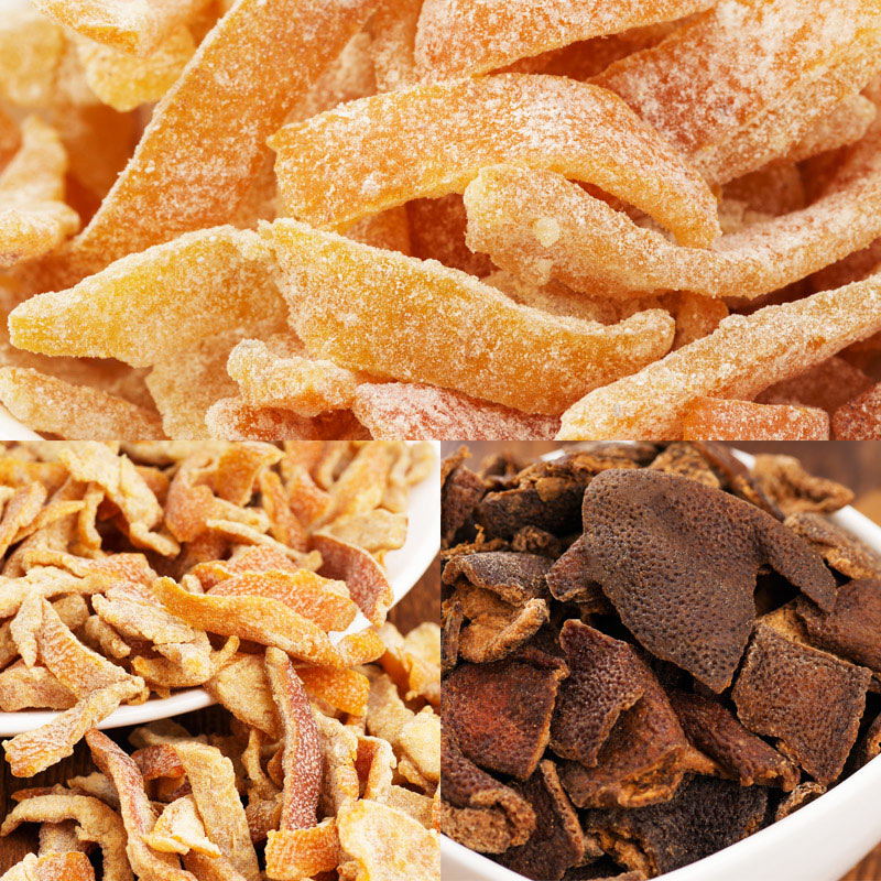 Dried orange peel white sugar black sugar icing sugar liquorice edible salt glucose