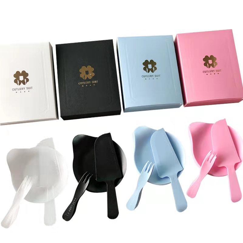 White light blue light green watermelon red white milky white beige flower color apricot silver black gray blue black four-leaf clover paper box 10 5-plate 5-fork with big knife blue (gold four-leaf bag) 5-plate 5-fork belt