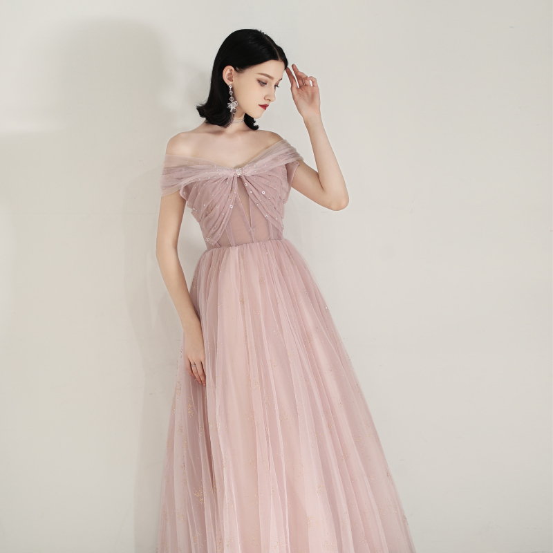 Toast dress bride 2022 new summer birthday party pink engagement dress banquet performance temperament long - Taobao