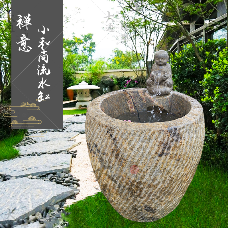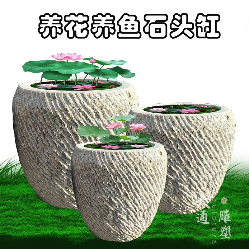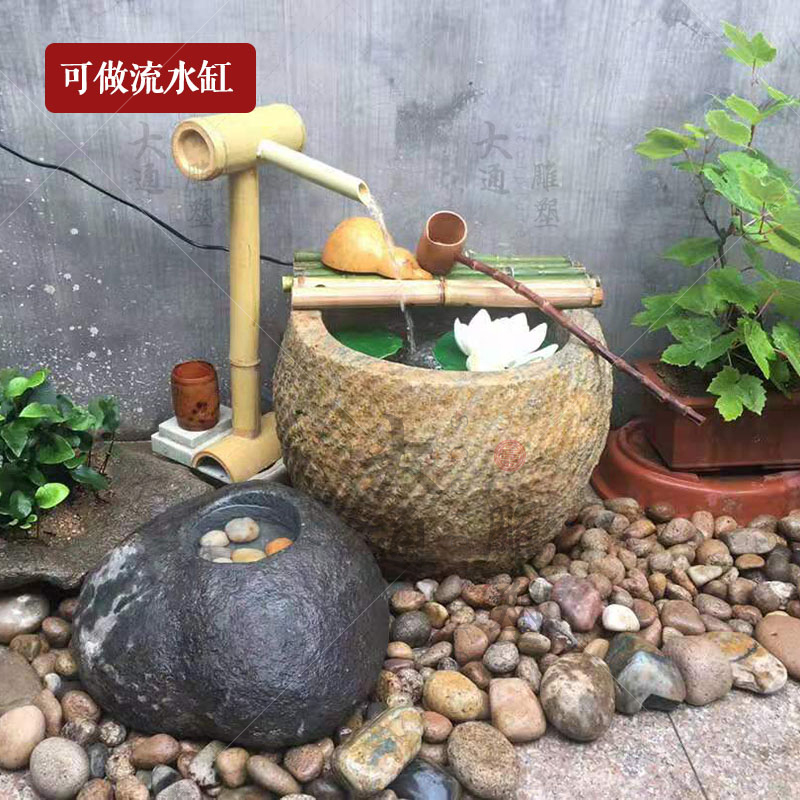Stone-cylinder patio fish-fish stone fish tank flower-tank water cylinder stone basin stone trough round garden decorated stone sculpted flow water basin