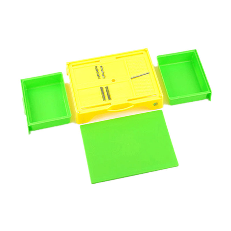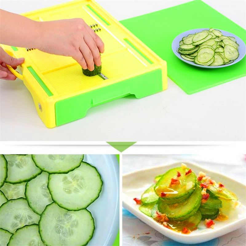 Six pieces of a cut vegetable plate with a vegetable cutter