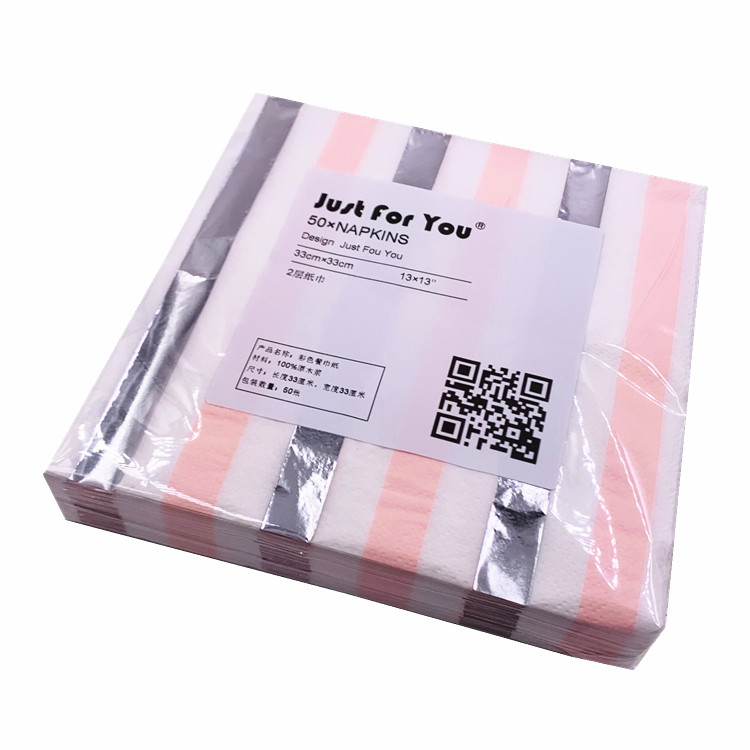 Printed paper towels Color napkins Wine Cups Flower Arrangements Creative Mouth cloth pink striped bronzed silver face towels 50 sheets per box