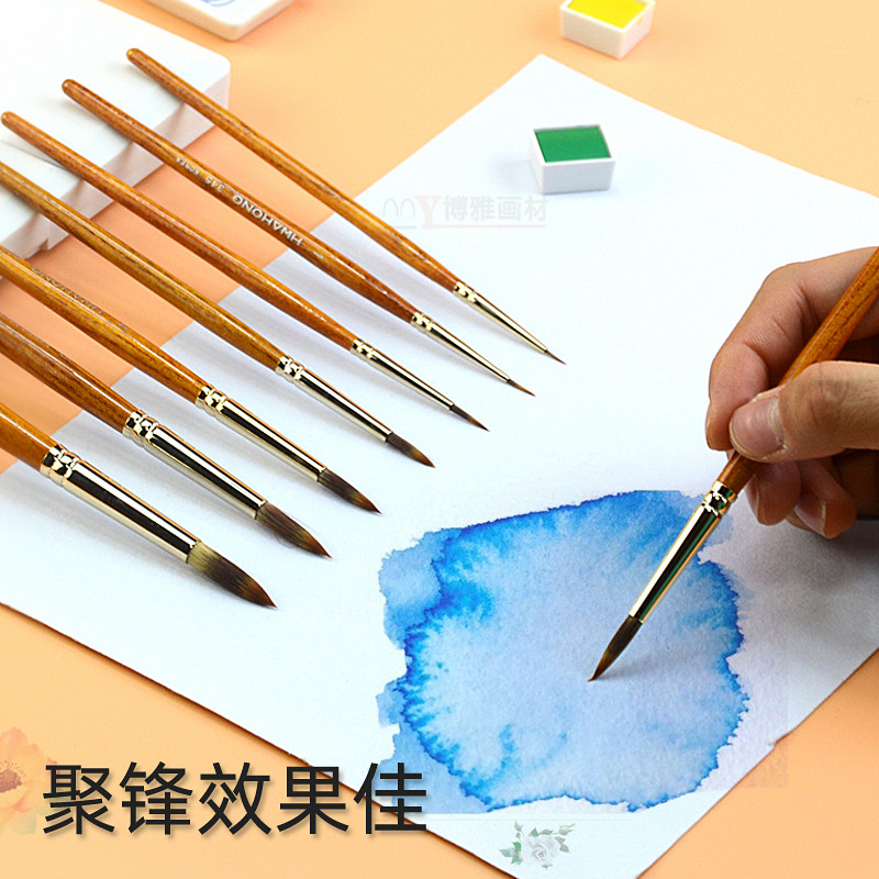 South Korean Huahong 345 nylon Mao round head watercolor painting pen brush water powder propylene oil painting surface hooking thread suit