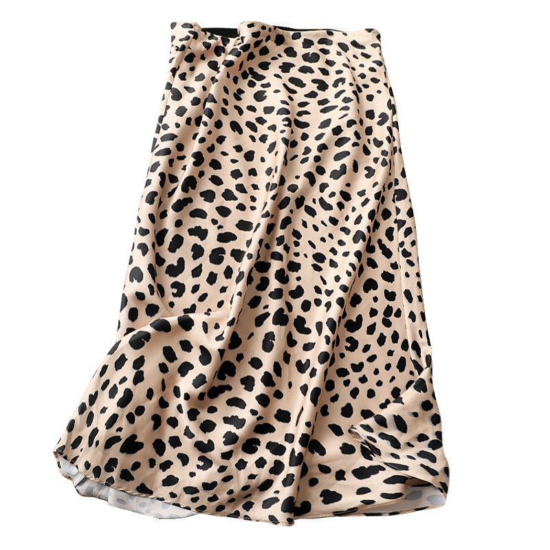 Japanese women's dress summer slope A satin - side BAO WEN digital positioning printed half - body skirt with thin bag - buttock skirt
