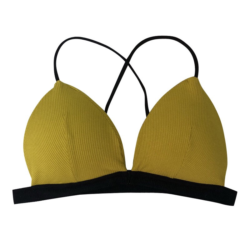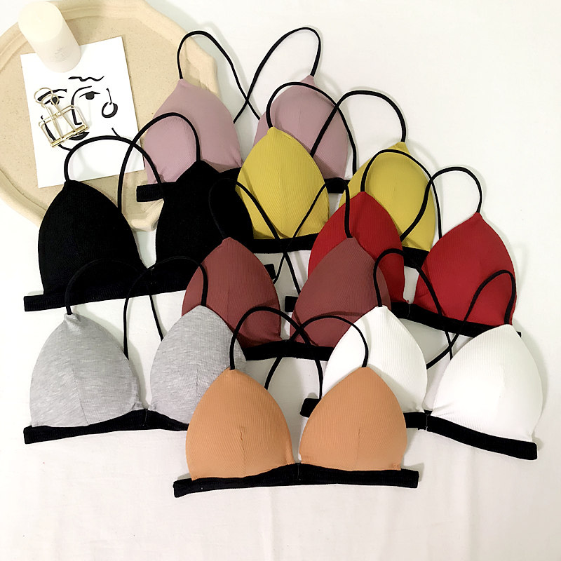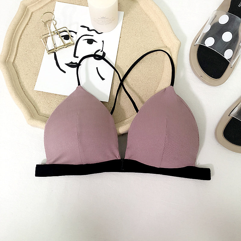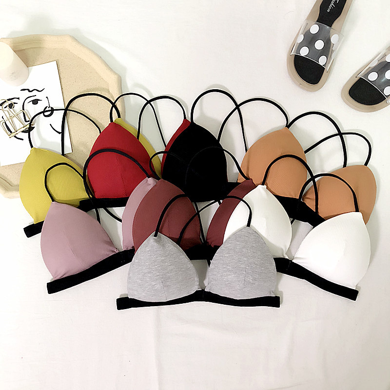 Summer Underwear Women Thin style Slim Shoulder Strap Beauty Back Triangle Cup Front Button No Steel Ring Bra Dew Back Flat Breast Harness Bra
