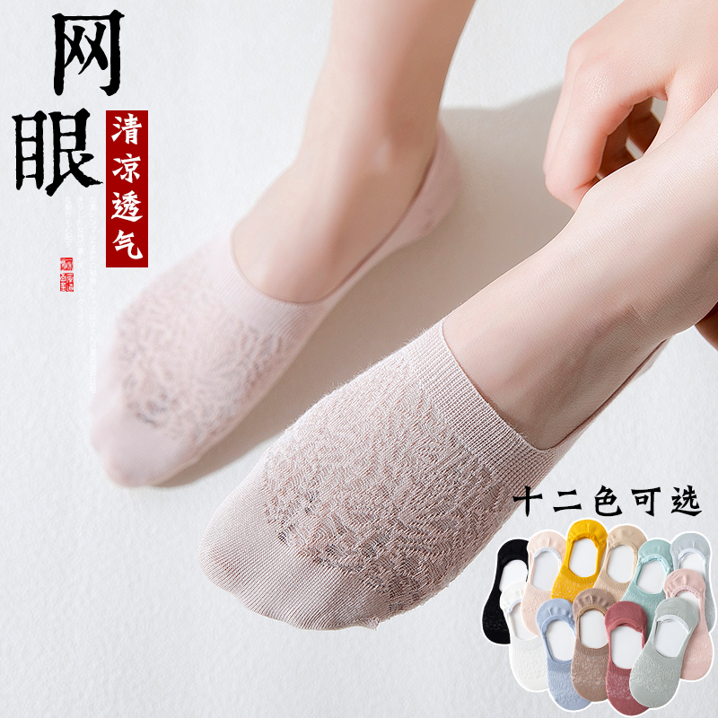 Socks bottom boat socks women's invisible non-slip can not fall off with spring and summer thin cotton pure cotton mesh shallow mouth socks women's summer