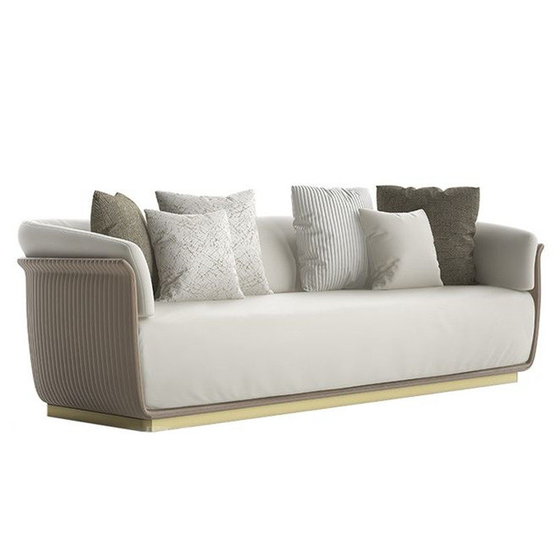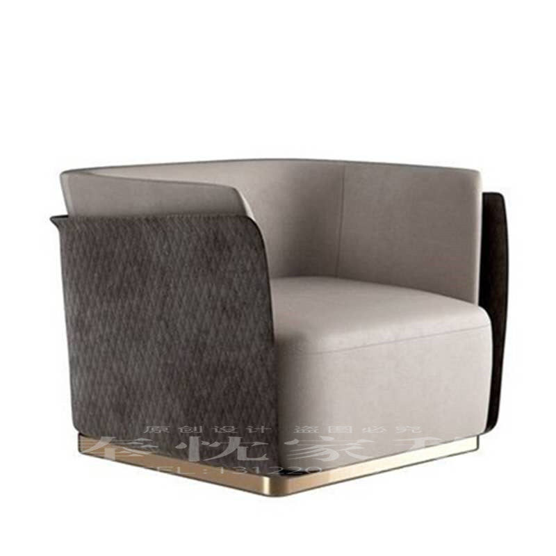Hong Kong-style luxury model room single double three-person leather fabric sofa Italian style living room stainless steel gold-plated sofa