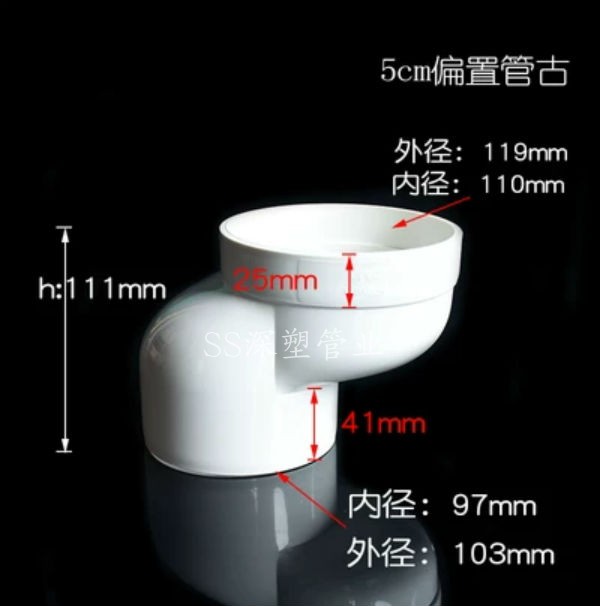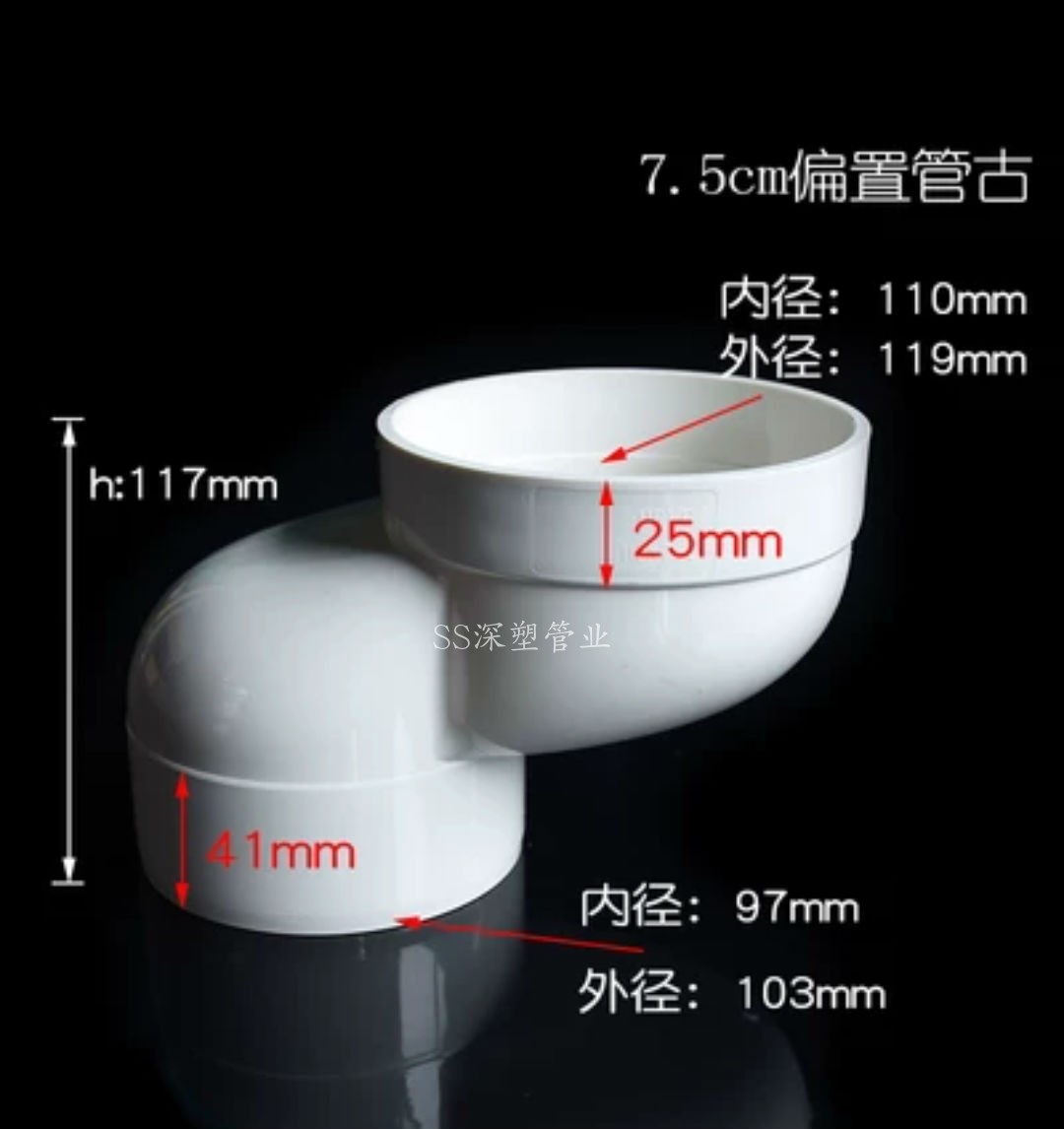 110PVC drainage pipe pre-buried eccentric directly adjusts the middle distance downpipe joint offset directly