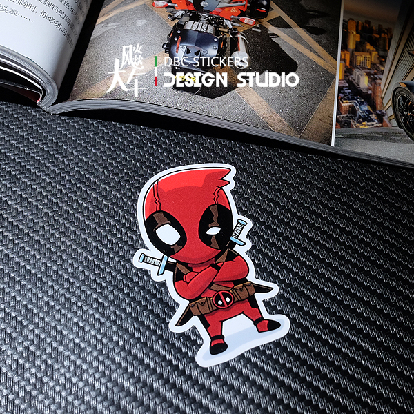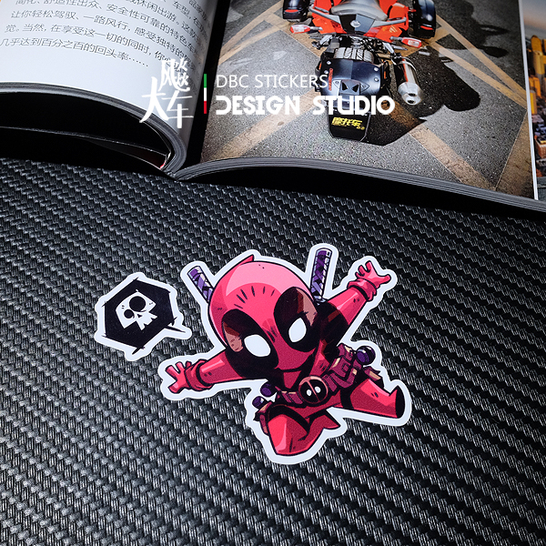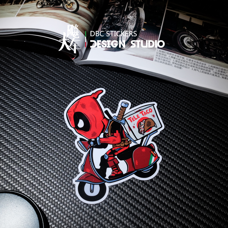 Electric car car stickers creative cute funny Deadpool car stickers riding a motorcycle to deliver food stickers