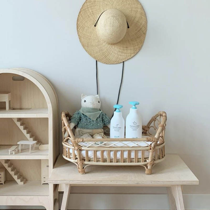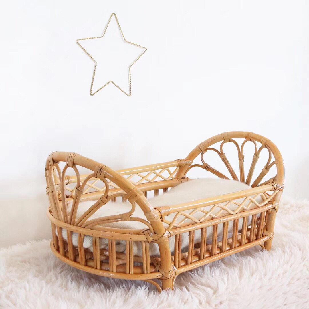Korea ins dolls rattan choreography bed photographic toy bed imported Indonesian rattan bed doll bed dressed up as home wine toy