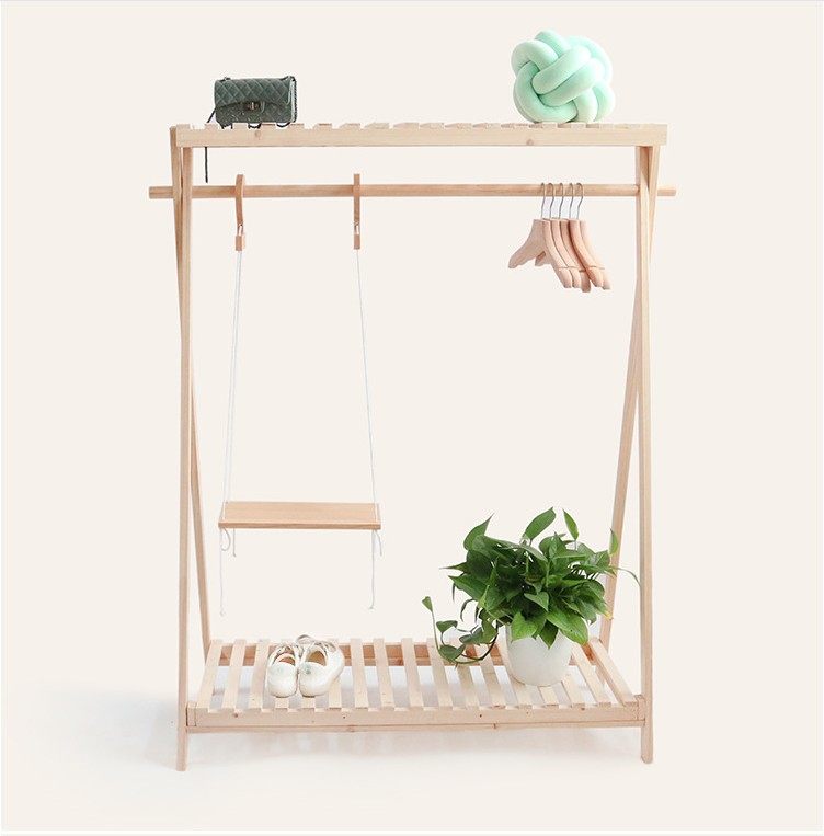 Children's clothing store INS wind display rack solid wood floor-standing Nordic style clothing rack simple coat rack log shelf