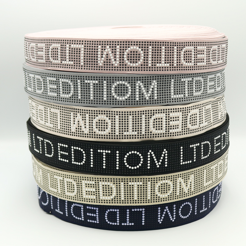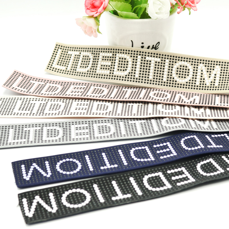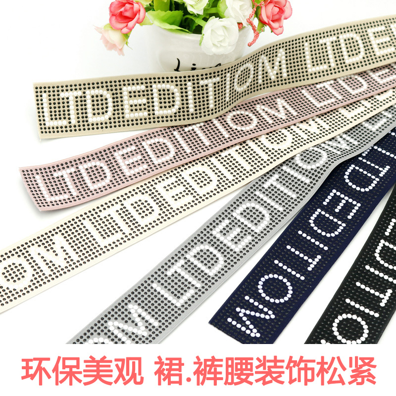 Elasticated bandwidth thick stretch 4cm wide colored letter glue beads encrypted high stretch waistband elastic band