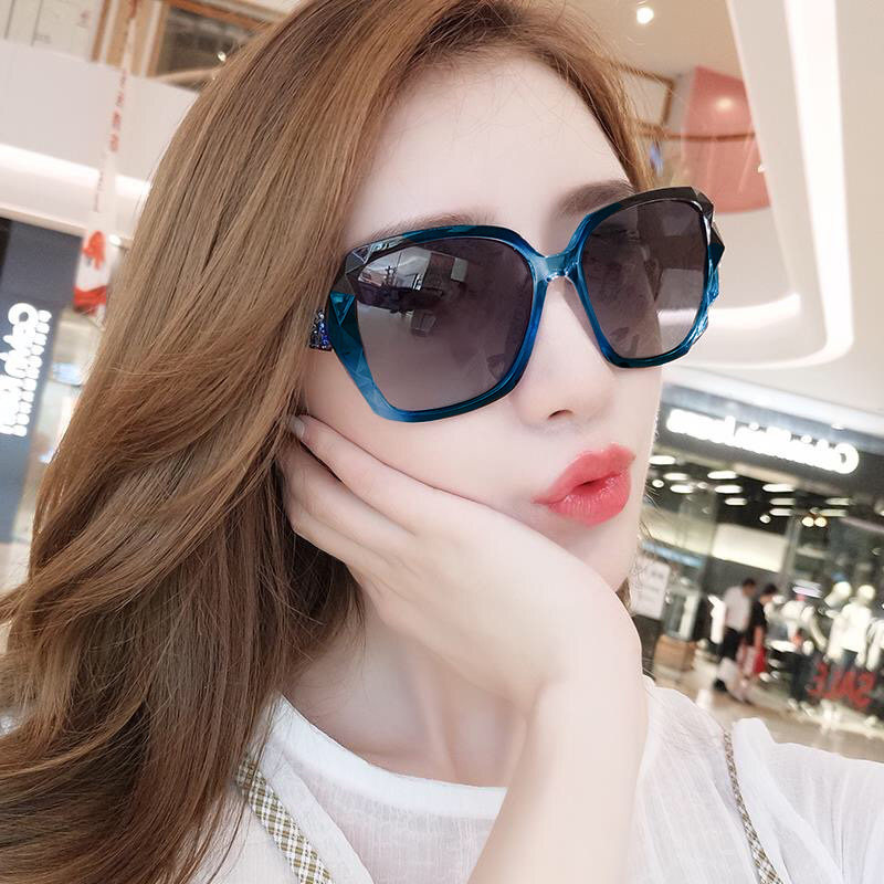 2022 new ladies polarized sunglasses Han version stars Tide Glasses Round Face Big Frame Anti UV Mesh Red Sunglasses