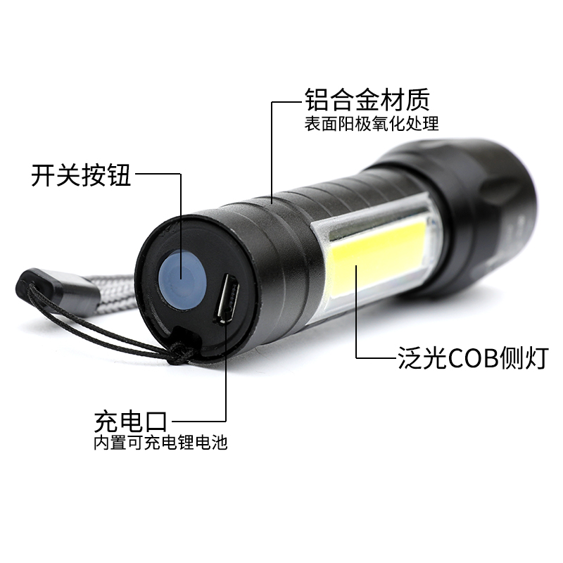 Intense light flashlight USB rechargeable multifunction portable Mini small flashlight Home Outdoor Zoom Far-shot