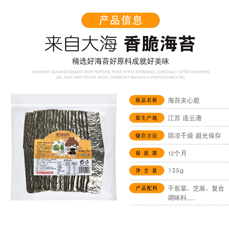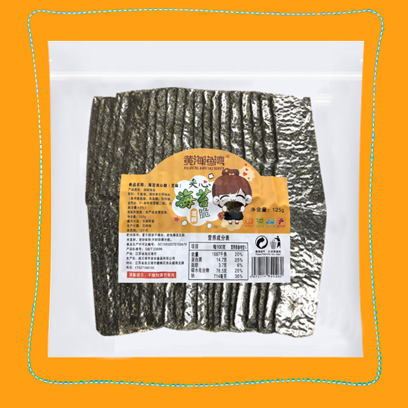 Lianyungang specialty sesame sandwich seaweed chips Children's ready-to-eat head water seaweed bagged 125g large packaging snacks