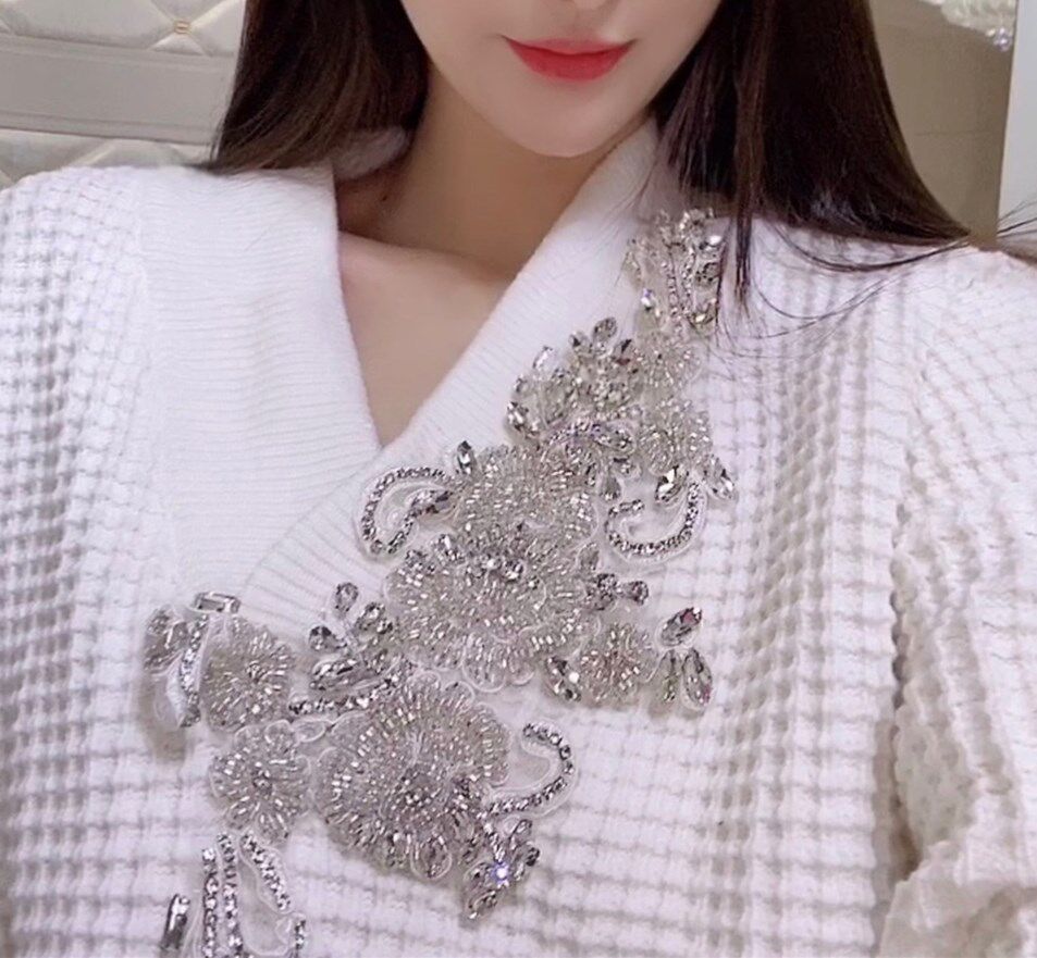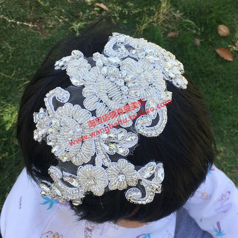 Rhinestone heavy bead flower bride headdress crystal stud bead flower DIY turban cover large diamond flower skirt wedding dress decoration