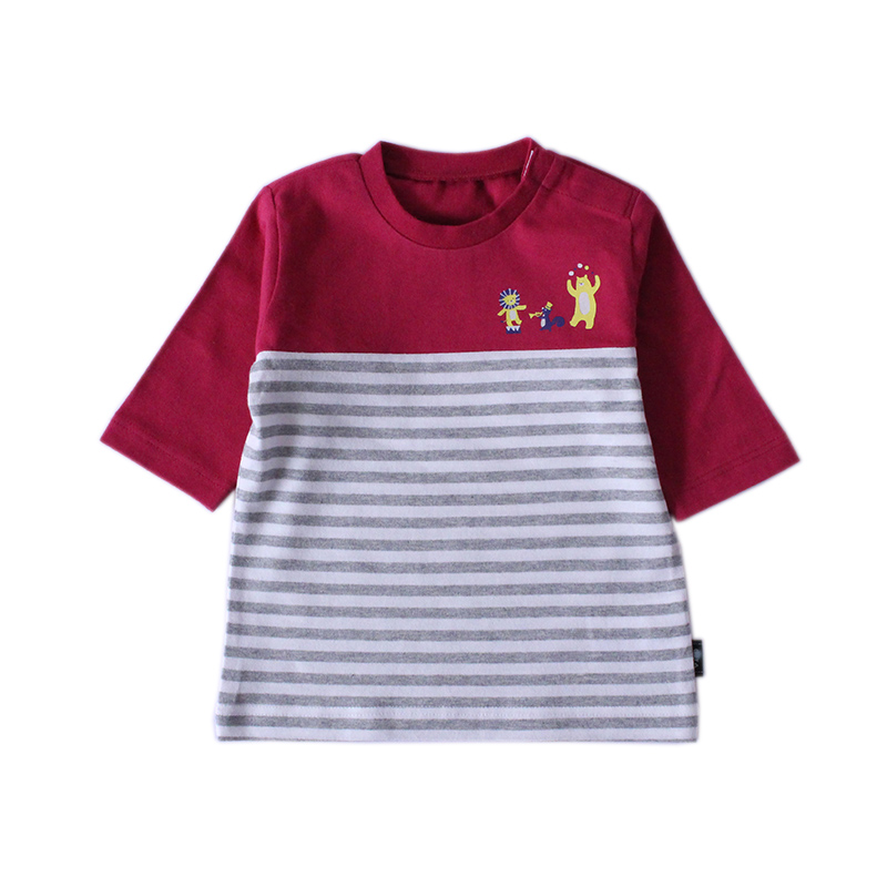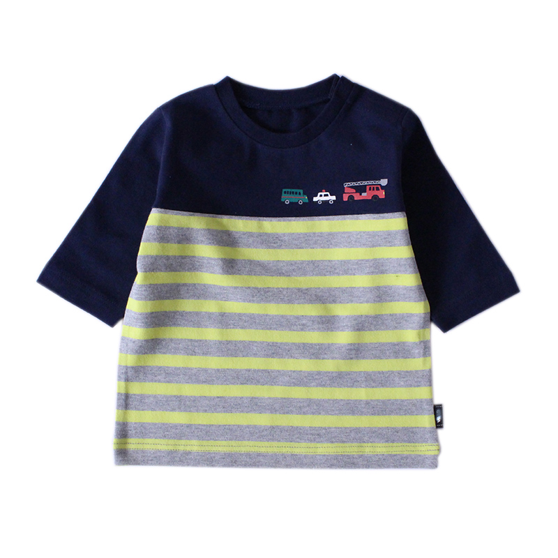 Export Japanese children's striped three-quarter sleeve boy baby cotton round neck small and medium children's clothing medium sleeve T-shirt foreign trade class a