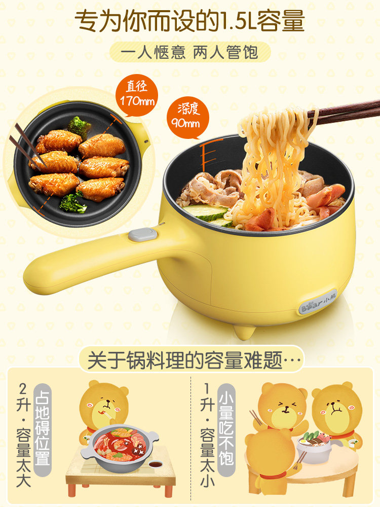 Bear small electric cooker electric cooker dormitory students multi-functional cooking noodle pot home small frying frying steaming cooking one pot