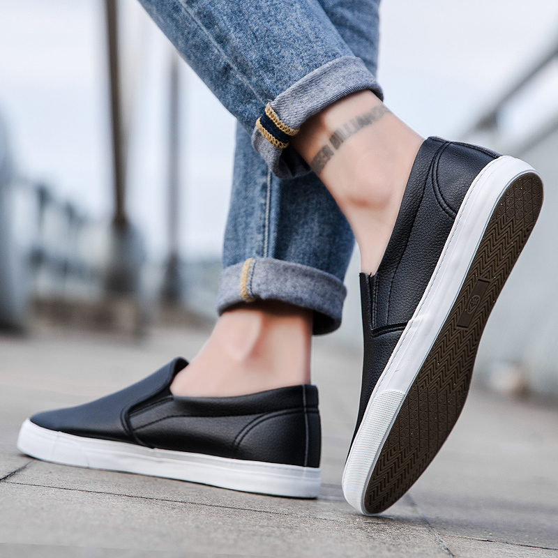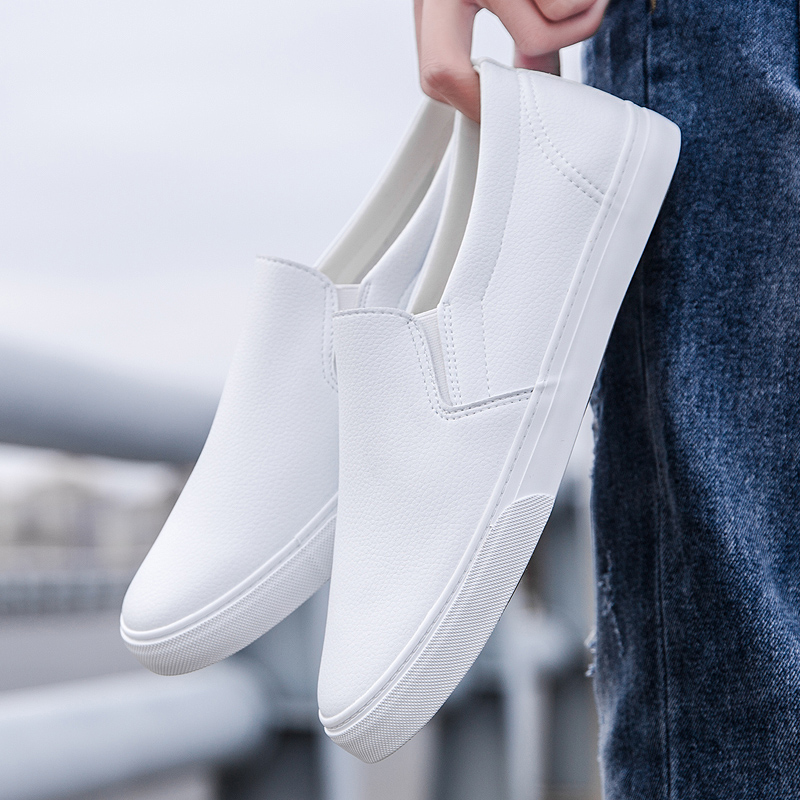 Men's men's shoes lazy canvas shoes men's leather casual shoes small white shoes men's slip-on slip-on shoes trendy