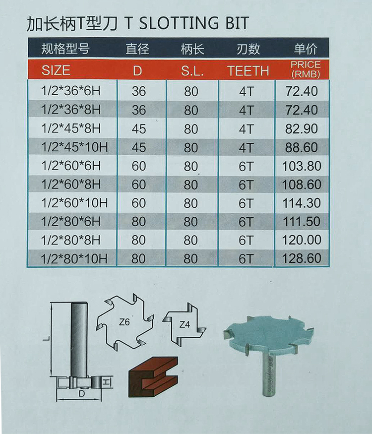 Wave industrial-grade lengthened T-cutter electric wood engraved milling machine side notched 4 blades 6 teeth Multi-tooth cut pull groove knife