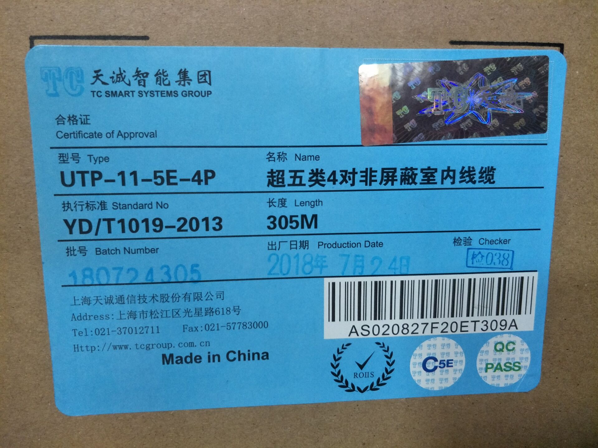 Shanghai Tiancheng network cable Tiancheng super five types of network cable TC network cable UTP-11-5E-4P Tiancheng intelligent group network cable