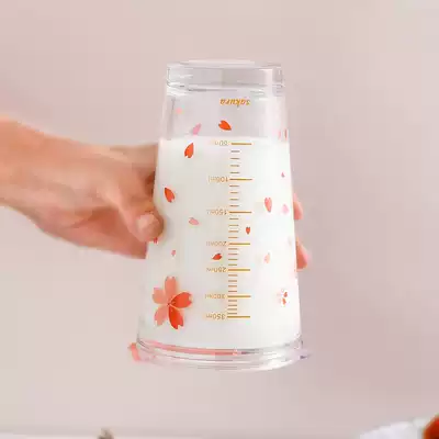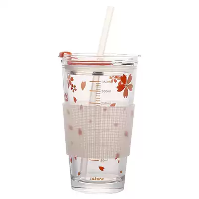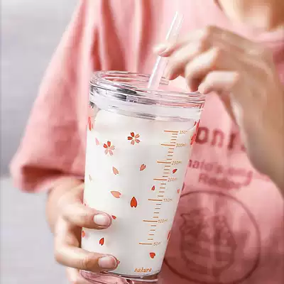 Adult scale glass Straw water cup ins Net Red Creative juice cup Breakfast cup Portable milk cup with lid