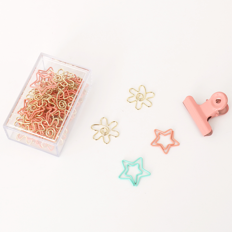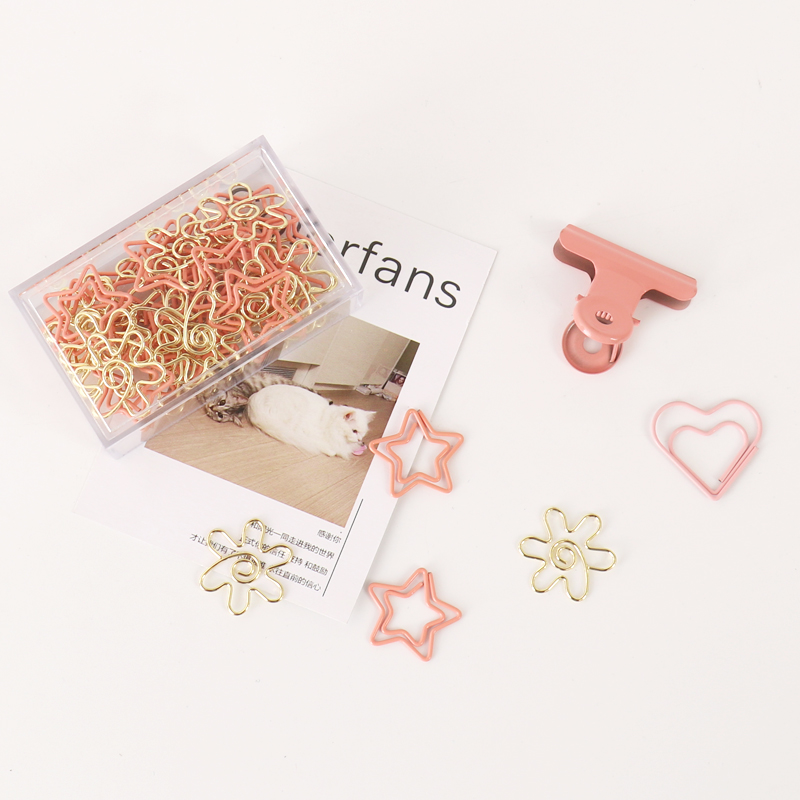 Imitation gold sunflower paper pin pink star paper clip paper binding pin bookmark decoration