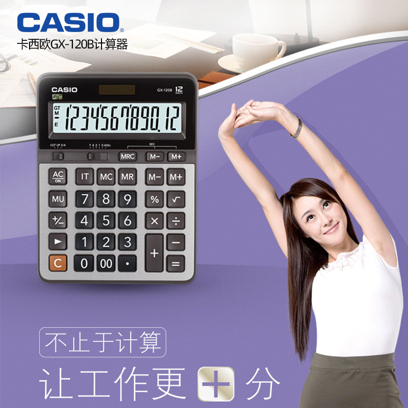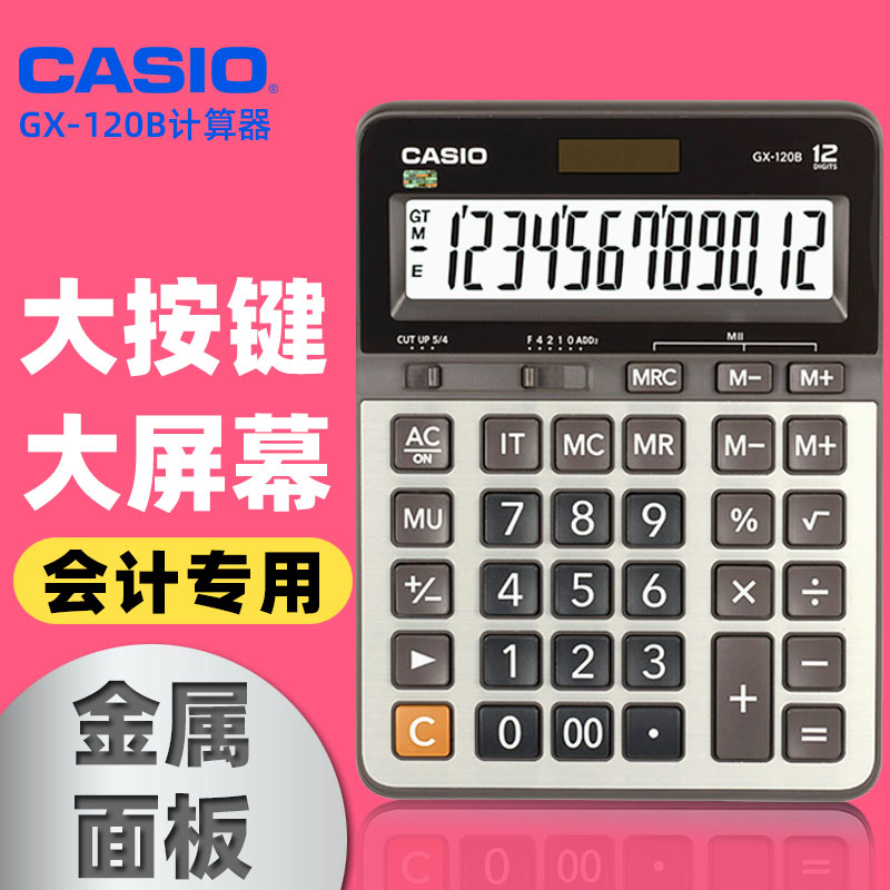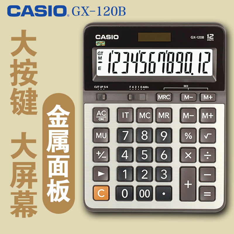 casiioCASIO calculator office use business large number GX-120B solar type large screen sensitive large press key finance computer dual power supply metal panel accounting special calculator