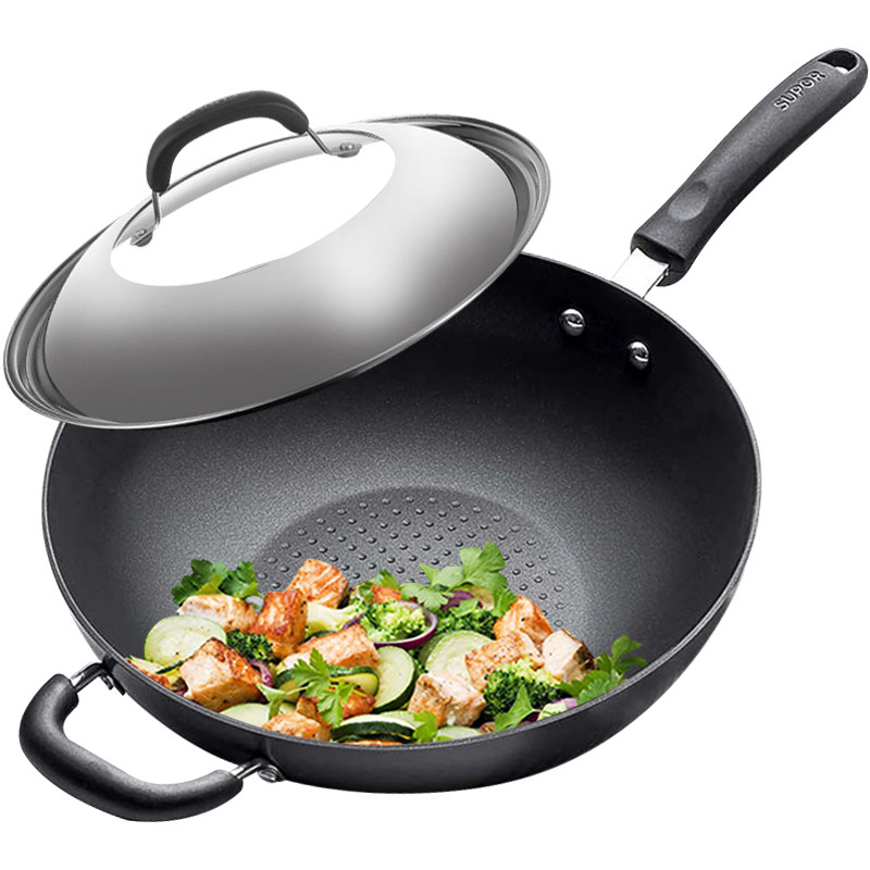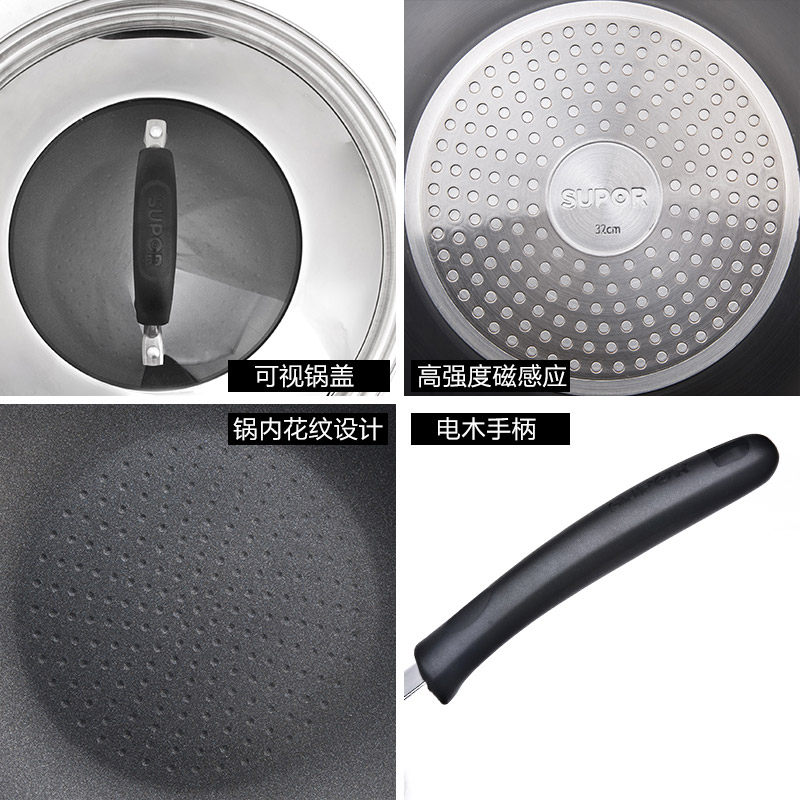 Supoir not stained with pan frying pan without oil smoke flat bottom pan household induction stove gas stove multifunctional frying pan 32cm