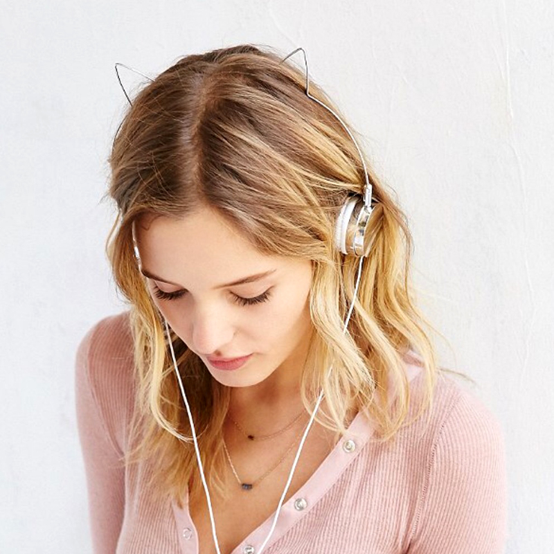 Headphone headwear high sound quality anchor live tennis net red cat ear cute line control with wheat student internet class light riding ear
