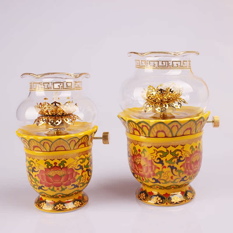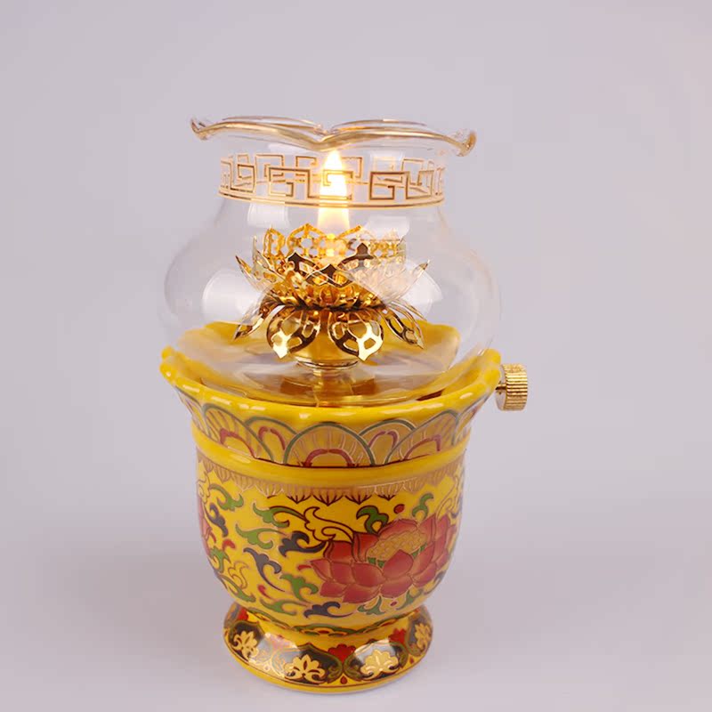 Tang Caighee oil lamp Changming lamp windproof liquid ghee lamp for the Buddha lamp Lotus lamp for the Buddha Ceramics Tangcai
