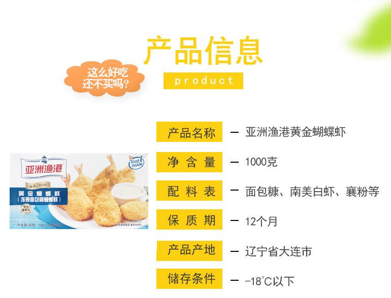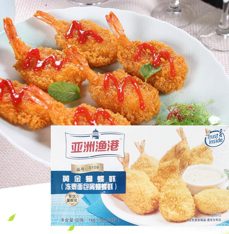 Juxian Products Asian Fishing Port Frozen Golden Butterfly Shrimp 1kg58-62 Fried Semi-finished Seafood Aquatic Products