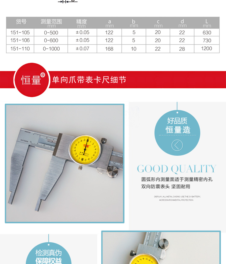 Constant volume lengthened claw with table card ruler 0-300 500mm Single-claw meter disc caliper inner diameter plus 10 with table cursor card
