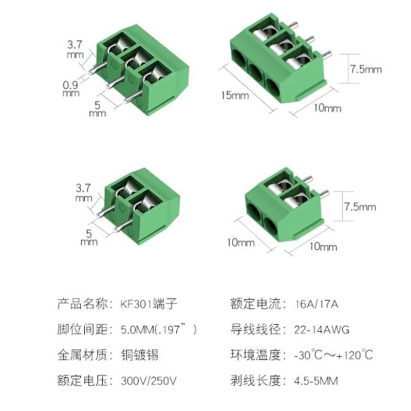 Terminal KF301 2P 3P pitch 5 08MM can be spliced plug-in connection screw type 300V 16A