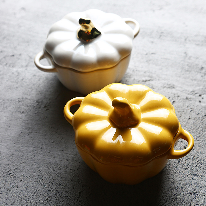 Mino cartoon pumpkin shape with lid small bowl cup creative ceramic baking stewed soup cup baking bowl cute binaural bowl