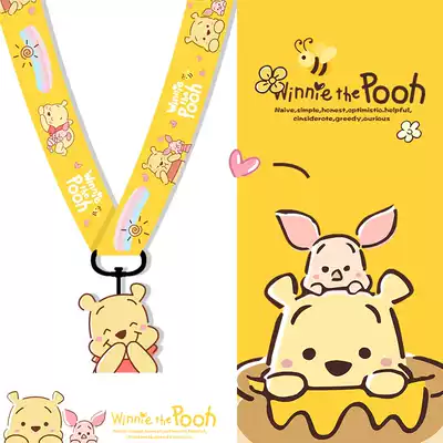 Winnie the Pooh mobile phone lanyard female hanging neck short wrist rope cute portable disc lanyard short lanyard Net Red