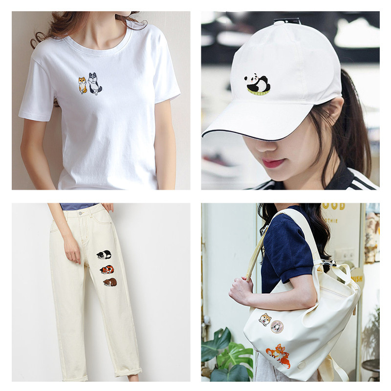 Masked black and white cat (1) Masked brown striped cat (1) Masked three-flowered cat (1) Panda in bamboo hat (1) Panda with bamboo basket (1) Panda flipping things (