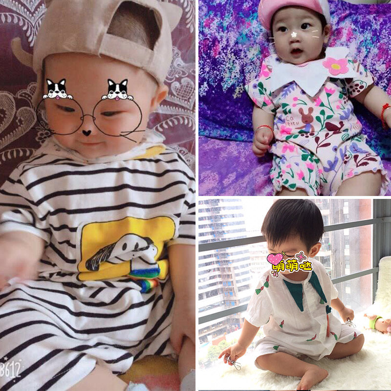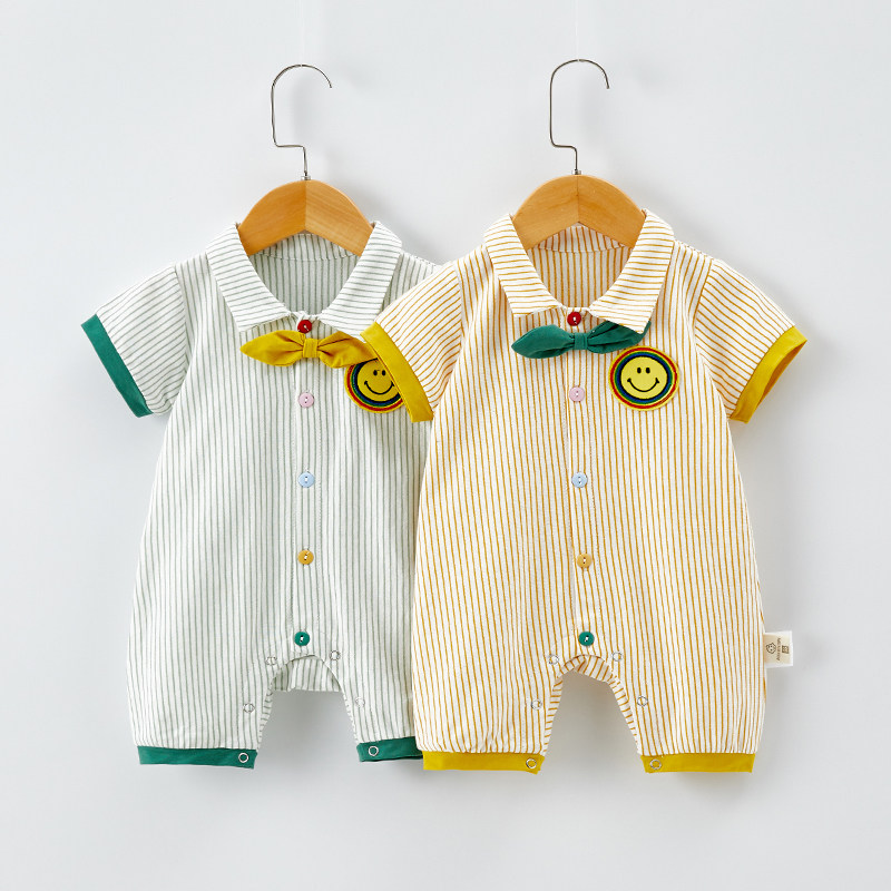 Baby Even sweaters short sleeves Toddlers Summer outfits Dress Striped Women Infant Khaclothes Thin male newborns Collar Clothing Tide