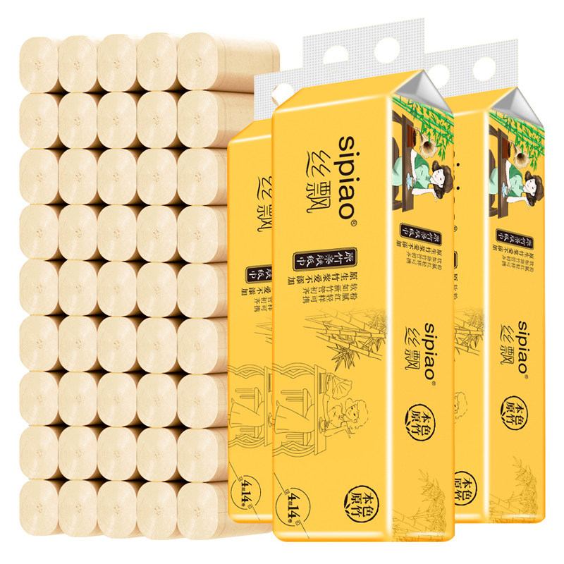 (Silk Floe Flagship Store) Natural Color Bamboo Pulp Roll Paper 42 Rolls Home Toilet Paper Whole Lift Rolls Paper Hand Paper Toilet Paper-Taobao