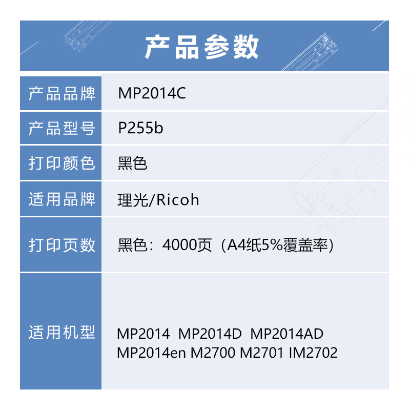 MP2014C black toner cartridges (4000 pages) MP2014HC black toner cartridges (12000 pages)