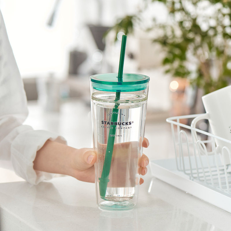 (Li Yuchun the same)Starbucks 20oz classic glass straw cup large capacity ins Feng Shui cup with lid