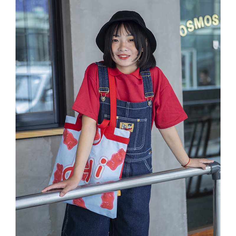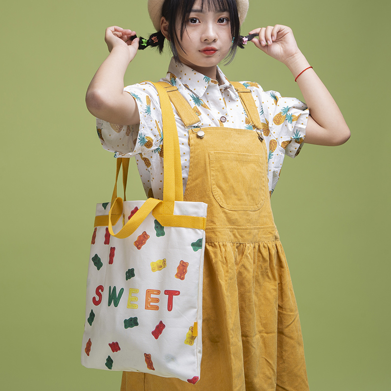 Ruo good original homemade ins shoulder canvas bag female literary hipster cute Japanese rubber bear cute